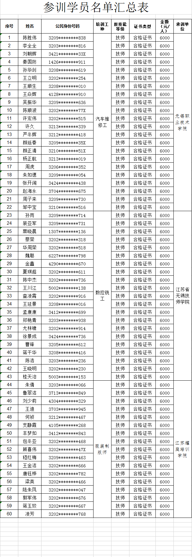 根據《關于組織開展2024年度無錫市技師崗位技能提升培訓的通知》(錫人社函〔2024〕26號)文件精神,經審核,3家承訓單位符合無錫市技師崗位技能提升培訓補貼條件,現將承訓單位及參訓學員名單公示如下: