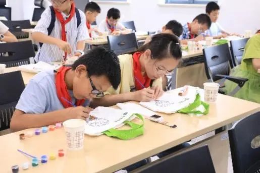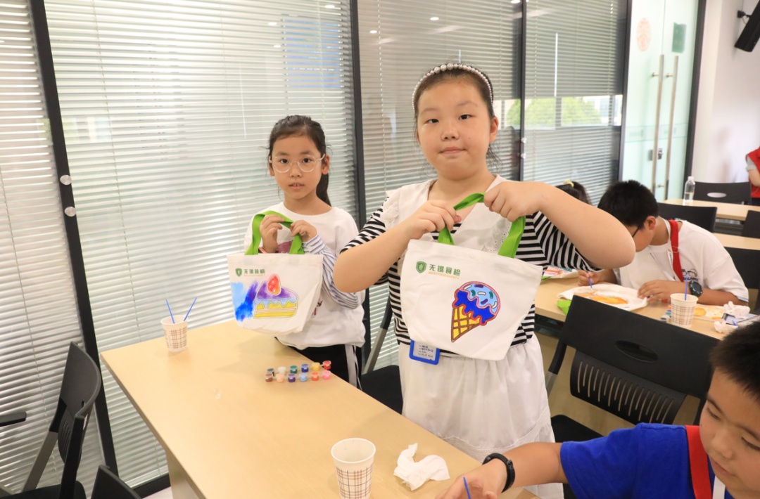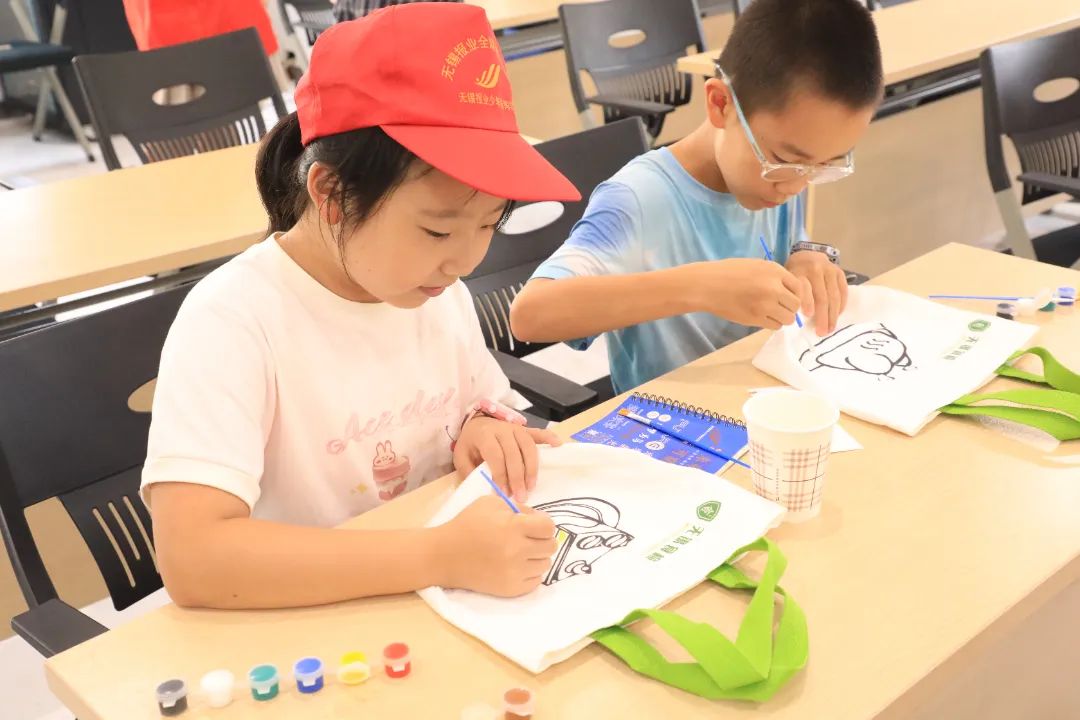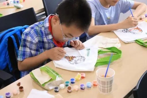 帆布包彩繪環(huán)節(jié)充滿歡聲笑語。孩子們?yōu)榈案狻垐F(tuán)等食物線稿填色,用繽紛色彩詮釋對(duì)健康飲食的理解,一幅幅童趣作品成為難忘的暑期記憶。