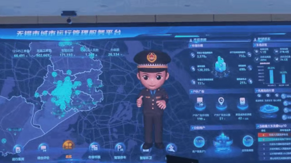 步入大廳,無錫城管數(shù)字人正為大家介紹無錫城市運(yùn)行管理服務(wù)平臺(tái)的建設(shè)和運(yùn)行情況,揭秘平臺(tái)如何圍繞“高度集成、高效指揮、高能支撐”開展工作。