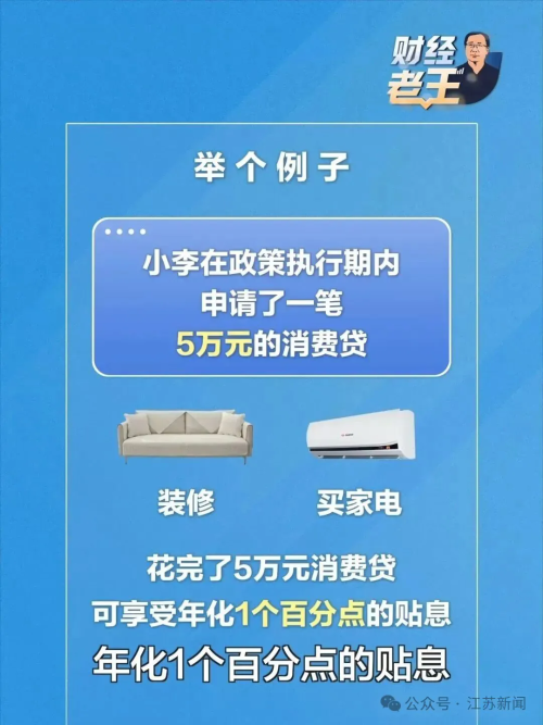 也就是說,從今年9月1日起一年內,無論是吃飯等小額消費,還是買車、裝修等大額消費,或者是旅游、養(yǎng)老等服務消費,只要你在相關機構獲得了消費貸款,并真實消費了,就可以享受年化1個百分點的財政貼息。