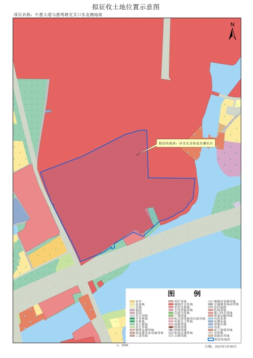 由縣級以上地方人民政府組織實施的成片開發建設需要用地,項目名稱為中惠大道與惠明路交叉口東北側地塊。