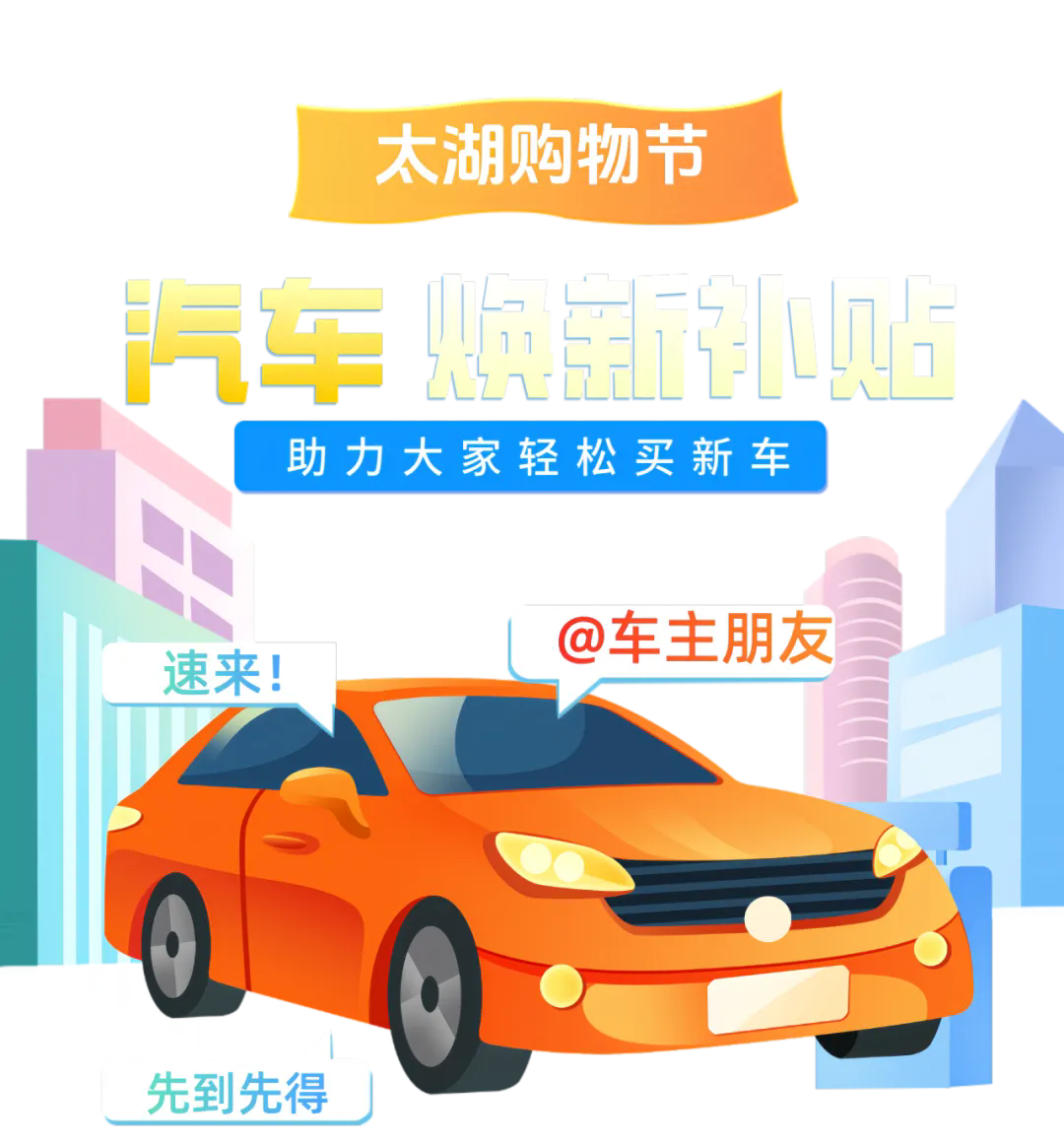 為更好順應汽車消費需求,激發(fā)大宗消費活力,我市在2025年9月5日至12月31日期間,開展太湖購物節(jié)汽車煥新補貼活動。本次補貼投放總額2億元,實行“總量控制、先到先得、用完即止”。