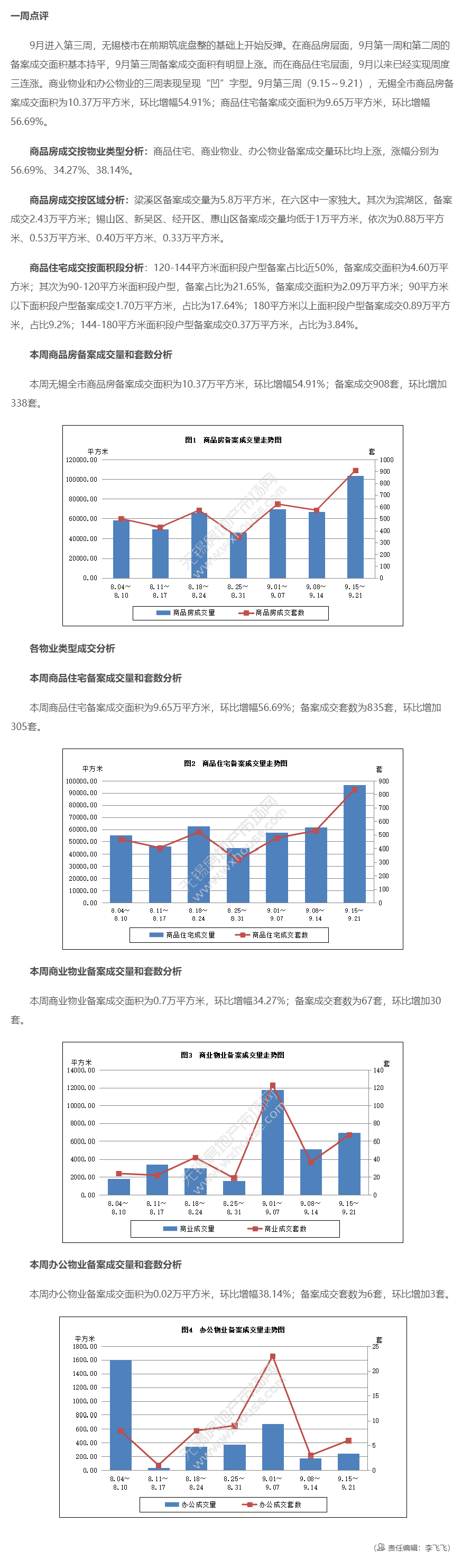 內(nèi)容概述 9.15~9.21無錫商品房一周備案成交10.37萬平方米