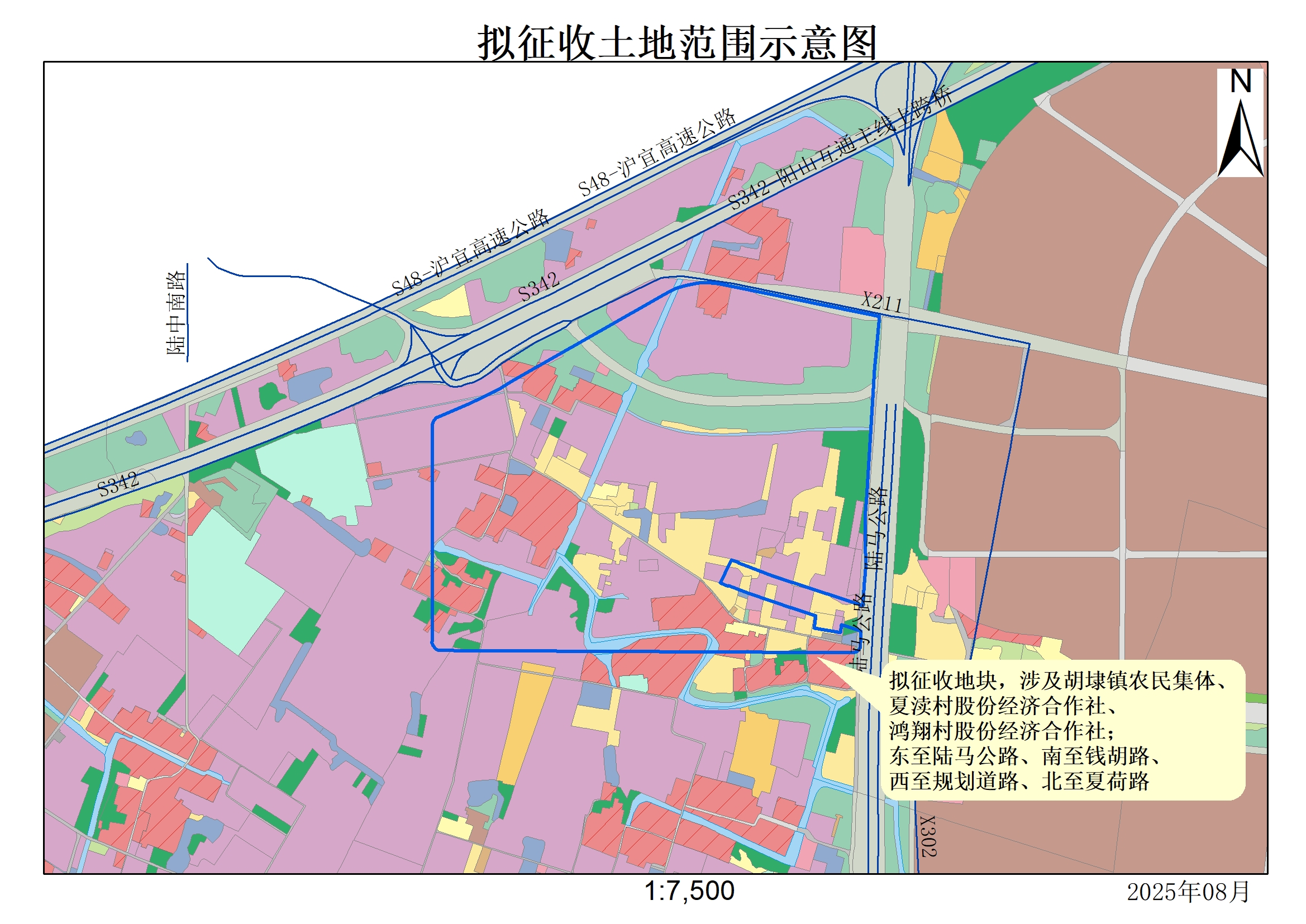 本次擬征收地塊為陸馬公路與錢胡路交叉口西北側地塊,位于無錫市濱湖區胡埭鎮農民集體、胡埭鎮夏瀆村股份經濟合作社、胡埭鎮鴻翔村股份經濟合作社范圍內。擬征收土地位置詳見附圖。