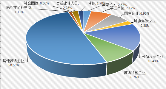 2025年三季度實繳職工數(shù)按不同性質(zhì)單位分類占比圖
