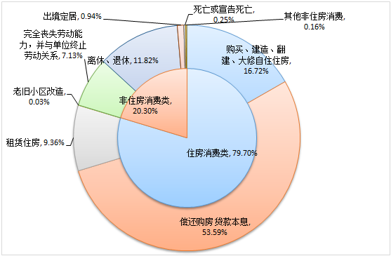 2025年三季度,住房消費類提取金額為53.51億元,環(huán)比下降2.16%,占當(dāng)季提取額的79.7%。其中還貸提取占比最高,提取金額35.98億元,占當(dāng)季提取額的53.59%。具體提取結(jié)構(gòu)如下: