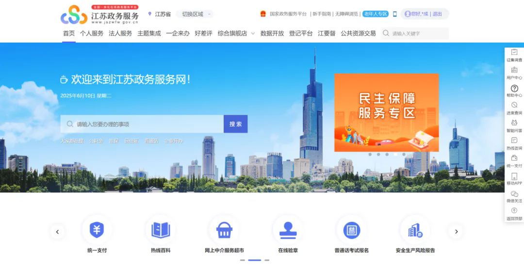 ①登錄江蘇政務服務網(https://www.jszwfw.gov.cn/)。