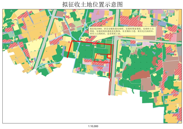 本次擬征收土地位于安鎮街道安南村、安南村周家巷組、安南村土山灣組、安南村南張巷組范圍內。擬征收土地位置詳見附圖。