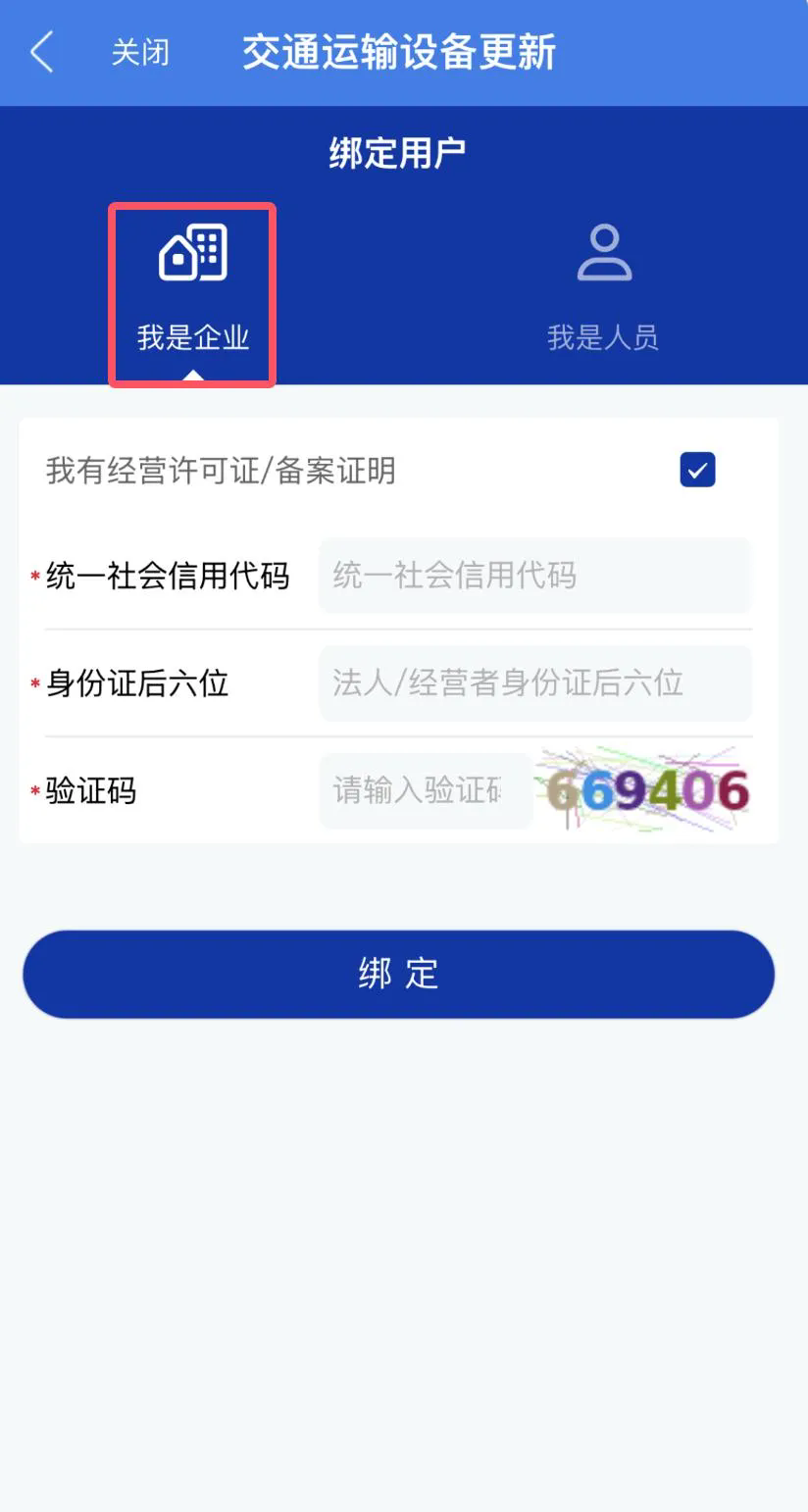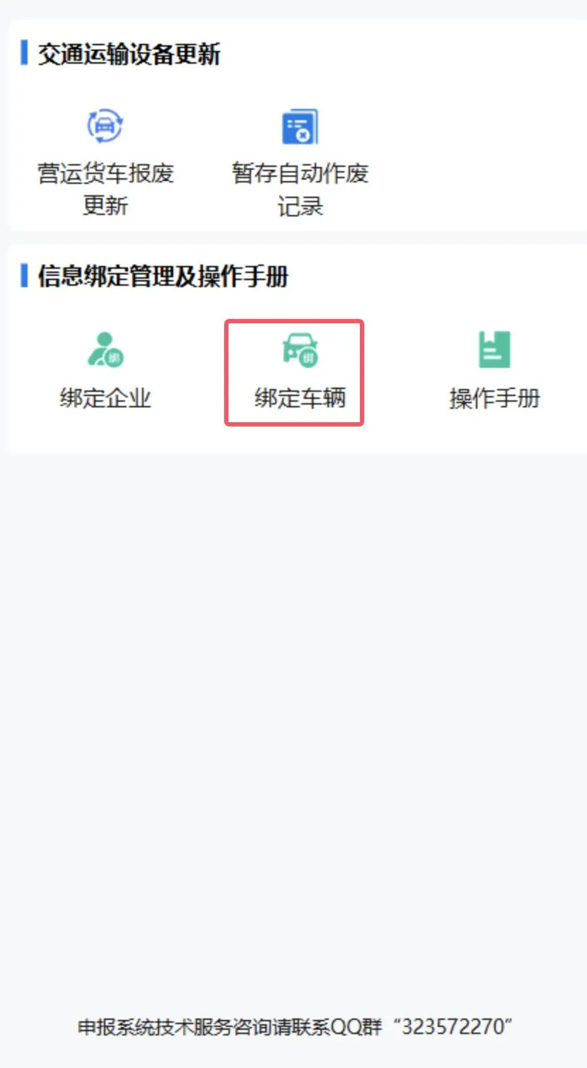 3.點擊“交通運輸設備更新”,綁定企業和車輛