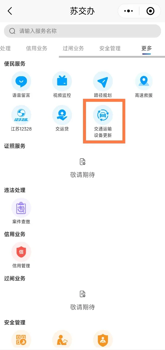 2.進入“更多”欄目,選擇“交通運輸設備更新”。