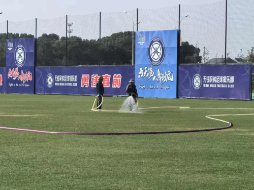 隨著新一屆無錫隊即將進入備戰關鍵階段,吳鉤足球俱樂部訓練基地也將正式投用。8日,記者來到位于胡埭鎮人民路與芙蓉南路路口的訓練基地探訪,正值冬日草皮養護期,只見幾名工作人員正在進行澆水、施肥等養護工作,球門已經安裝到位,球場四周的圍網上,印有吳鉤足球俱樂部的隊徽、隊旗、口號等元素,讓這座即將投用的全新基地充滿足球氛圍。