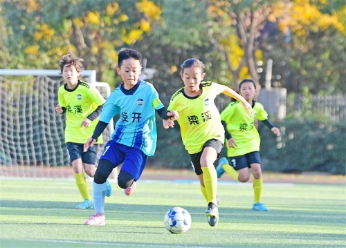 12月9日,在無錫市融成實驗小學(xué),學(xué)生們在無錫市小學(xué)生校園足球超級聯(lián)賽上展開角逐。當(dāng)日是世界足球日,無錫市各地組織豐富多彩的校園足球活動,讓學(xué)生們認(rèn)識足球、參與足球,盡情感受這項運動的樂趣。