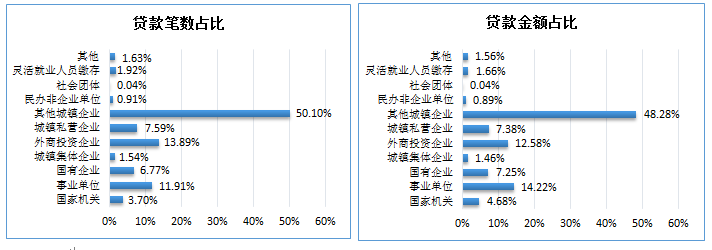 2025年三季度職工貸款筆數及貸款金額按單位性質分類占比圖
